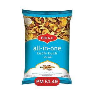 A comprehensive savory mix that lives up to its name, this snack is a delightful Blend of Gram Flour Namkeen, Pulses, Cornflakes, Nuts & Raisins. The combination provides a balance of sweet, salty, and spicy flavors, offering a complete and satisfying multi-textured snacking experience.