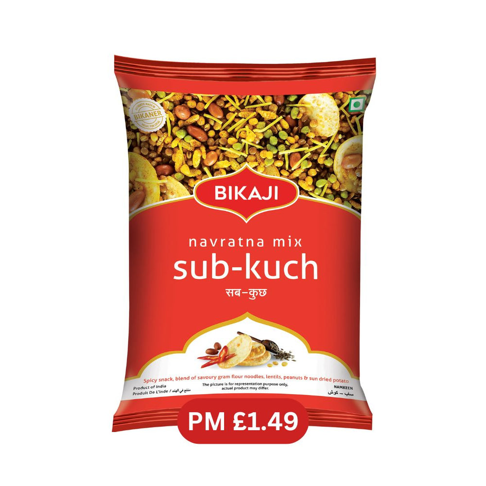 A delicious and Spicy snack, this mix is a blend of various ingredients, including savory gram flour namkeen, assorted lentils, crunchy peanuts, and crispy sun-dried potato pieces. It offers a multitude of textures and a rich, traditional Indian flavor profile in every handful.