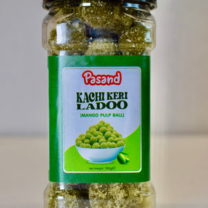 Our Kachi Keri Ladoo is a delicious sweet-and-sour mouth freshener made of Kachi Keri Pulp and sugar. These little pellets are the perfect way to wrap up your meal. INGREDIENTS Green Mango Pulp Sugar Class II Preservative Contains Added Artificial Flavouring Substance