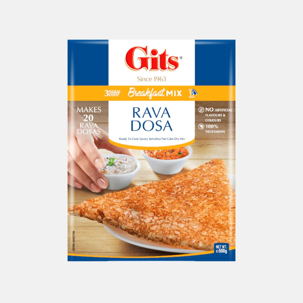 If you are craving a delicious South Indian breakfast but bored with plain white Dosa, then it is time to try Rava Dosa! All you need is this Gits Instant Rava Breakfast Mix, the ultimate breakfast recipe for a bright start to your mornings. Gits Instant Rava mix is 100% vegetarian, preservative-free, and has no artificial flavour and colour. The fact that these Rava can be made even without curd is another advantage point. Gits has been leading the instant mix market for over fifty years and touching the lives of Indians across the world with its wide range of products. Benefits - ? Authentic South Indian Rava ? Easy to make Rava breakfast mix in just 3 simple steps, makes 20 per pack ? No preservatives, artificial flavours or colors ? Safe and hygienic packaging