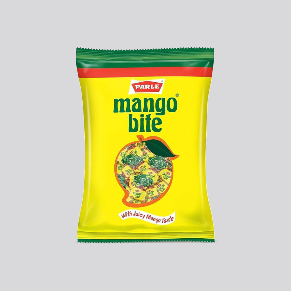 This candy, also from Parle, features the flavor of a ripe mango, providing a stark contrast to the Kaccha Mango Bite. Mango Bite delivers a sweet, juicy, and less acidic taste that aims to capture the richness and sweetness of a ripe, freshly cut mango. This popular candy is consumed by people of all ages for a quick sweet fix. The bright yellow packaging, featuring a large mango outline, highlights the product's focus on a sweet, luscious, and authentic mango experience, offering a different but equally beloved mango flavor option.