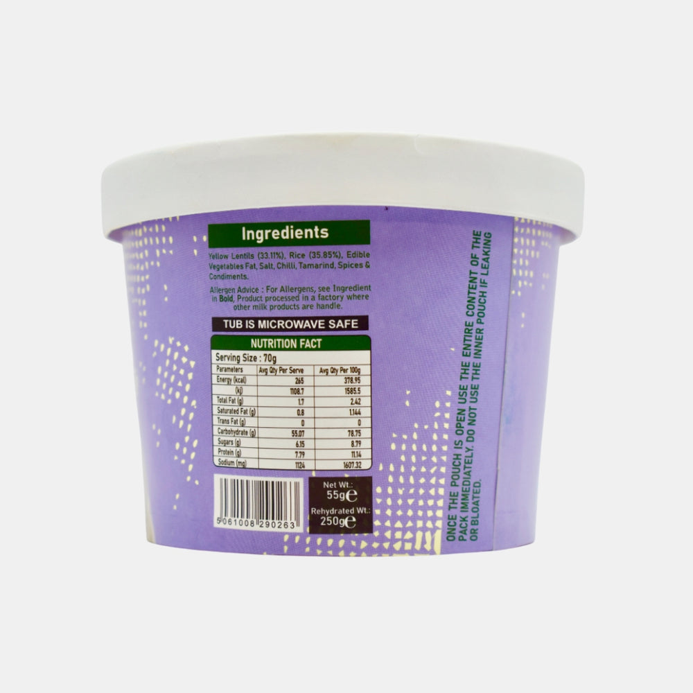Experience the heartwarming taste of traditional Gujarati comfort food with Pasand Foods’ Gujarati Dal & Rice – Ready to Eat (55g). Crafted for those who crave authentic flavours without compromising on convenience, this wholesome meal brings home the nostalgic essence of a lovingly cooked dal bhaat in every bite. Made with premium ingredients and a traditional recipe, the mildly spiced dal is rich in flavour and perfectly complements the soft, fluffy rice — a classic combination that reflects the true spirit of Gujarati cuisine. Whether you're a busy professional, a student living away from home, or someone always on the go, this 55g pack is your ideal companion for a quick, nutritious, and satisfying meal. Just heat it up and enjoy — no mess, no fuss. It's the perfect solution for travel, office lunches, or those days when cooking feels like a chore but your taste buds still crave something homely and comforting. Pasand Foods ensures quality and taste in every pack by using natural ingredients, with no added preservatives or artificial flavours. This ready-to-eat meal is not just about convenience — it’s about staying connected to your roots through food that feels like home. The portion is ideal for a light meal or to be paired with accompaniments like papad, pickle, or a dollop of ghee for an extra indulgent touch.