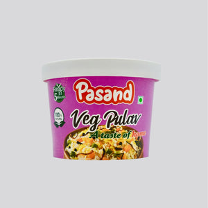 This product is a convenient, single-serving container of Pasand Veg Pulav, advertised as "Ready in 3 Minutes." This instant meal offers a quick and easy way to enjoy a traditional Indian vegetable pilaf, which typically consists of aromatic long-grain rice cooked with mixed vegetables and mild spices. The magenta-colored cup boldly states, "A taste of home," suggesting a focus on authentic, comforting flavors. It is presented as being "100% NATURAL," appealing to consumers who prioritize wholesome ingredients even in convenience meals. The 'Ready in 3 Minutes' feature makes it an excellent option for busy professionals, students, or travelers seeking a hot, satisfying, vegetarian meal with minimal preparation time—likely requiring only the addition of hot water. The image on the cup displays a portion of the savory rice dish with visible vegetables like carrots, peas, and beans.