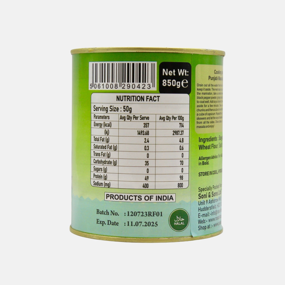 Indulge in the bold, authentic flavours of India with Pasand Foods’ Soya Punjabi Tikka Masala Chaap 850g—a deliciously spiced and protein-rich delight crafted for every food lover who craves the taste of North Indian cuisine. Packed with the goodness of soya and seasoned with an aromatic blend of traditional Punjabi spices, this ready-to-cook chaap is your perfect companion for quick meals and vibrant get-togethers. The rich masala marinade infuses every bite with depth, warmth, and the irresistible smokiness of tandoori-style cooking—without the need for hours in the kitchen. Whether you’re hosting friends, planning a family dinner, or simply treating yourself to something flavorful, Pasand’s Tikka Masala Chaap delivers restaurant-style taste in the comfort of your home. It’s completely vegetarian, high in protein, and ideal for grilling, pan-frying, or baking. Serve it as a sizzling appetizer, roll it in a wrap, toss it in a curry, or plate it with naan and mint chutney for the full Punjabi experience. What sets this product apart is its convenience—it’s pre-marinated and ready to sizzle, making it a time-saving hero for busy weekdays or spontaneous cravings.