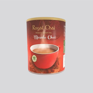 Experience the truly authentic and aromatic flavor of India's most cherished beverage with Royal Chai Premium Instant Masala Chai. This signature blend perfectly captures the complexity of traditional homemade chai, combining robust black tea, creamy milk, sweet sugar, and a masterful mix of warming spices—including ginger, cardamom, cinnamon, and cloves. Our specially formulated instant mix ensures that you receive a consistently spiced, rich, and comforting cup every time. Forget the lengthy process of boiling milk and decocting spices; with this convenient formula, simply "Just Add Hot Water" to enjoy a steaming, fragrant, and perfectly balanced cup of Masala Chai in mere moments. The elegant red and gold packaging, featuring a cozy cup set against a backdrop of spices, underscores its premium quality. Ideal for those who crave the complex, comforting flavor of a spiced chai with unparalleled ease, this 400g canister is your instant passport to a genuine Indian tea experience.