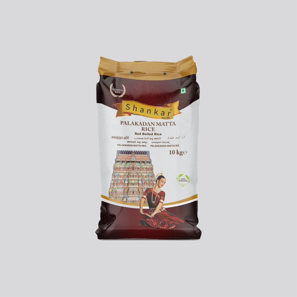 Stock up on your pantry essential with the economical 10 kg bag of Shankar's Palakadan Matta Rice. This high-quality Red Boiled Rice is 100% Natural and offers the rich, nutty flavor and firmness characteristic of rice from the Palakkad region. Ideal for large families or frequent use, this Premium Rice maintains the Shankar standard of quality since 1987.